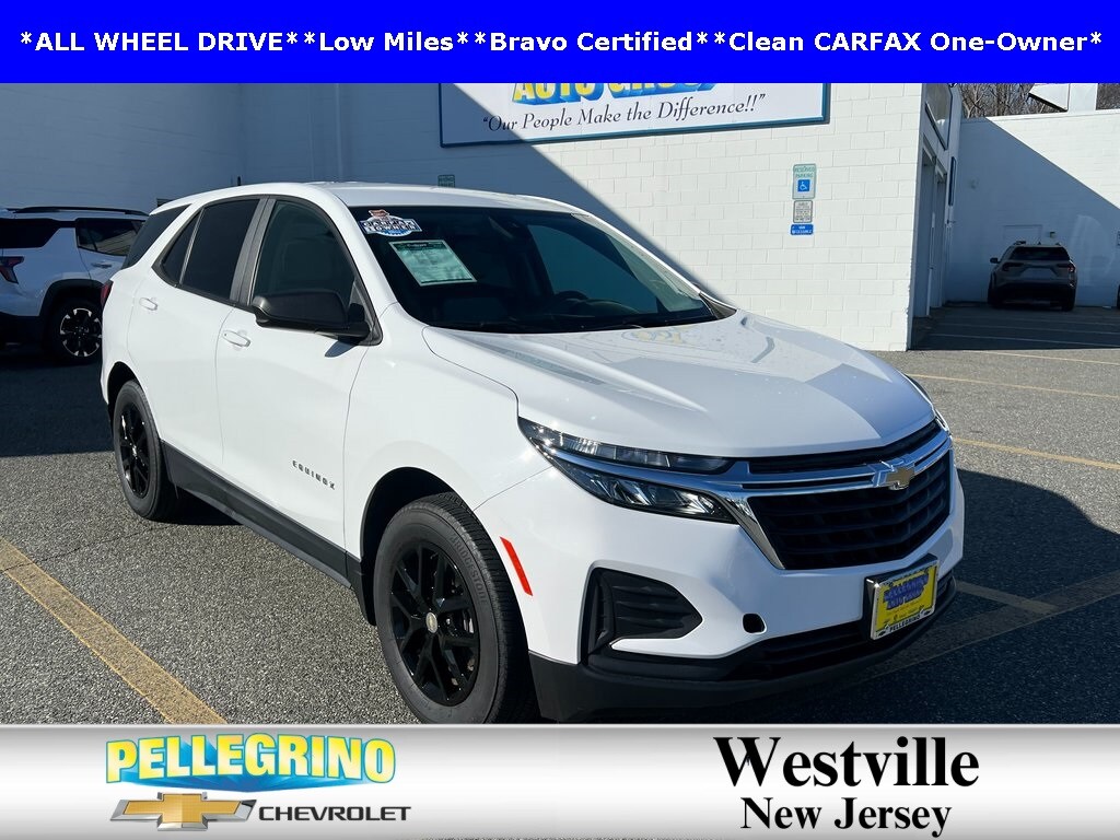 **ALL WHEEL DRIVE**Low Miles**Bravo Certified**Clean CARFAX One-Owner** Summit White 2022 Chevrolet Equinox LS AWD 1.5L DOHC, LS Convenience Package, Power Drivers Seat, Bluetooth, XM radio, Rear View Camera, 17" Aluminum Wheels and Much More..