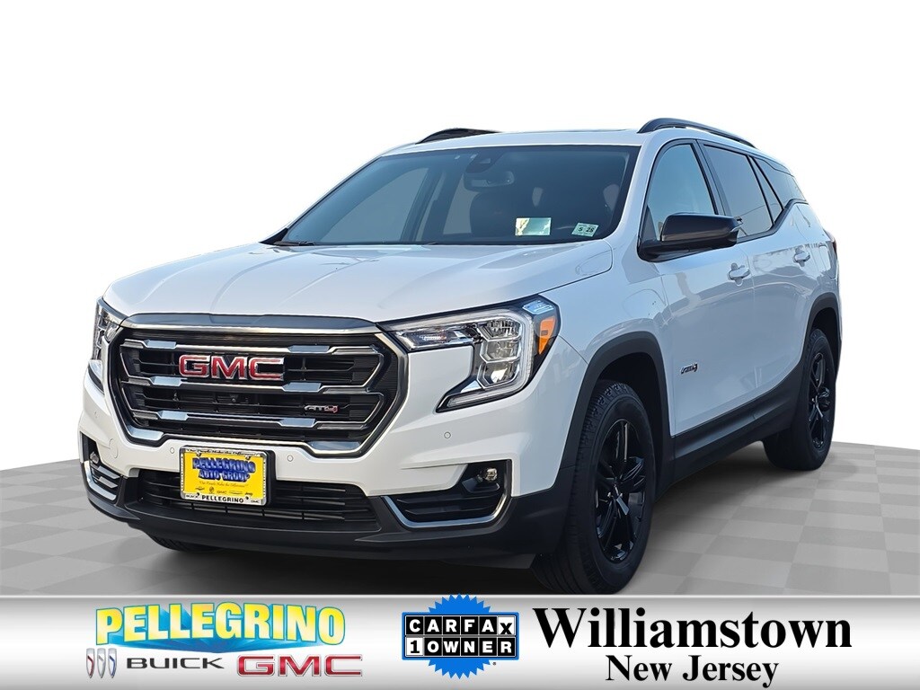 The CarBravo Certified 2022 GMC Terrain AT4 AWD is a rugged yet refined compact SUV designed for versatility and comfort. Its 1.5L turbocharged 4-cylinder engine paired with a 9-speed automatic transmission delivers confident performance with impressive efficiency. The Summit White exterior is accented by AT4-specific styling, roof rails, and LED signature lighting, while the Jet Black interior features perforated leather-appointed seats, heated front seats, and an 8-way power driver seat with lumbar support. Premium amenities include the Infotainment Package with an 8-inch touchscreen, Bose premium audio, wireless Apple CarPlay and Android Auto, HD Surround Vision, and a Head-Up Display for a connected and convenient drive. GMC Pro Safety Plus adds advanced driver-assistance features like Lane Change Alert with Side Blind Zone Alert, Forward Collision Alert, Lane Keep Assist, and Automatic Emergency Braking. With a power liftgate, SkyScape sunroof, and trail-ready capability, the Terrain AT4 is equally at home on city streets or weekend adventures.