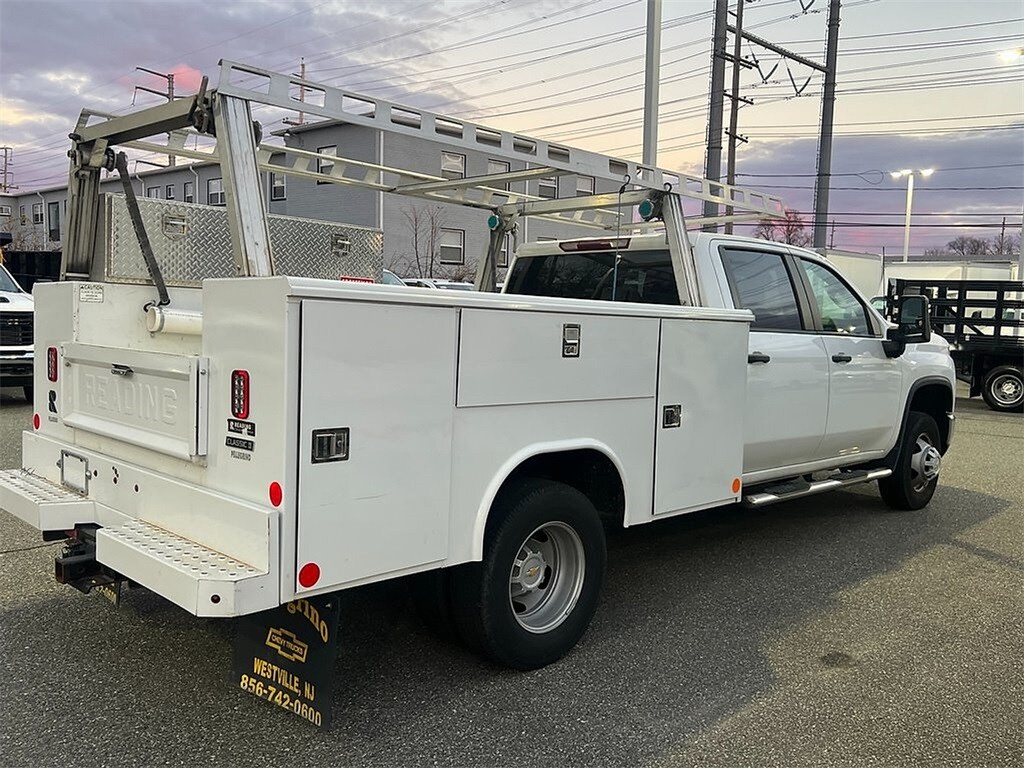 **WORK READY 9FT READING OPEN UTILITY WITH LADDER RACK**GAS 6.6L V8**CARFAX One-Owner** Summit White 2024 CHEVROLET SILVERADO CREW CAB 3500HD WT, Black Cloth, Heated outside mirrors and Much More....